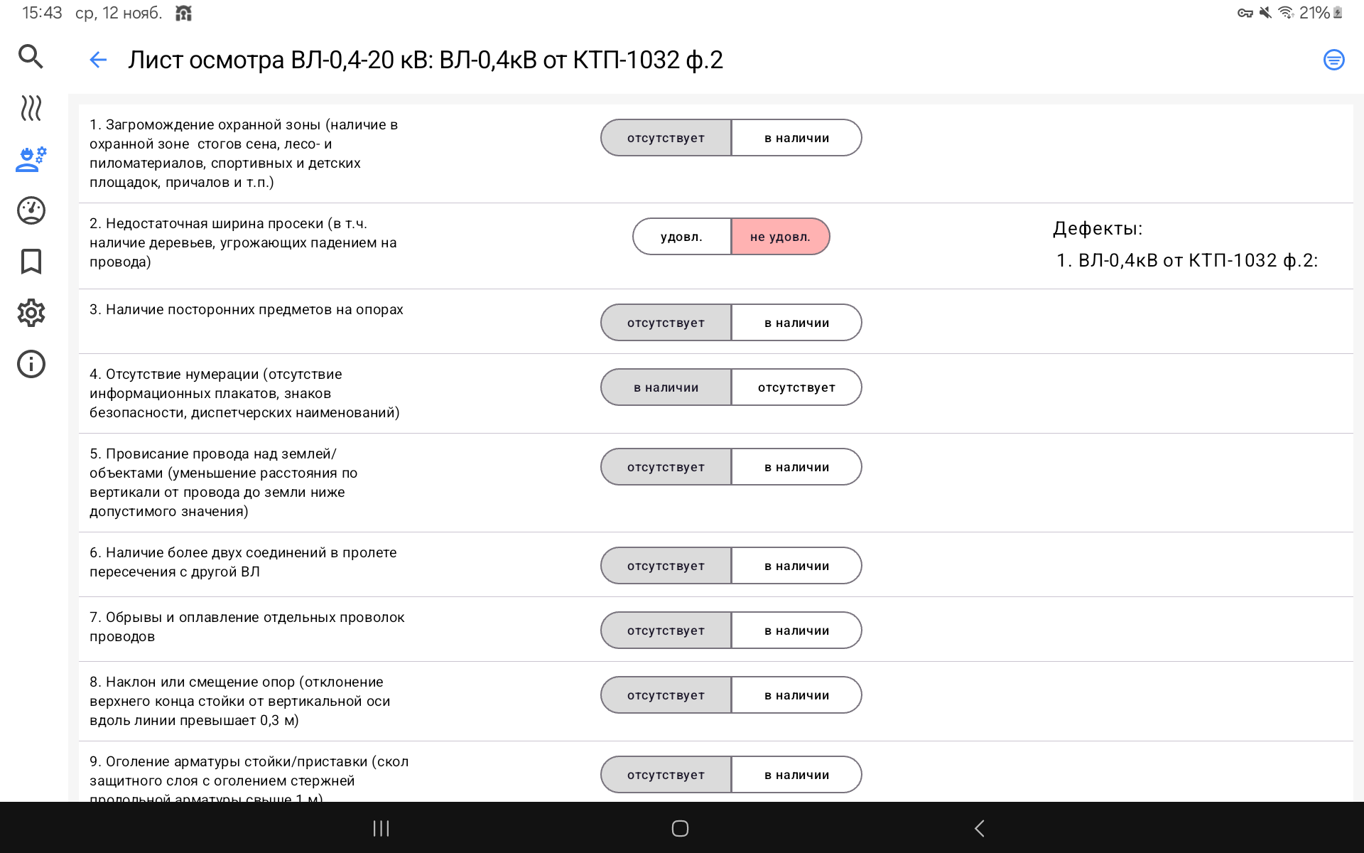 Лист осмотра ВЛ