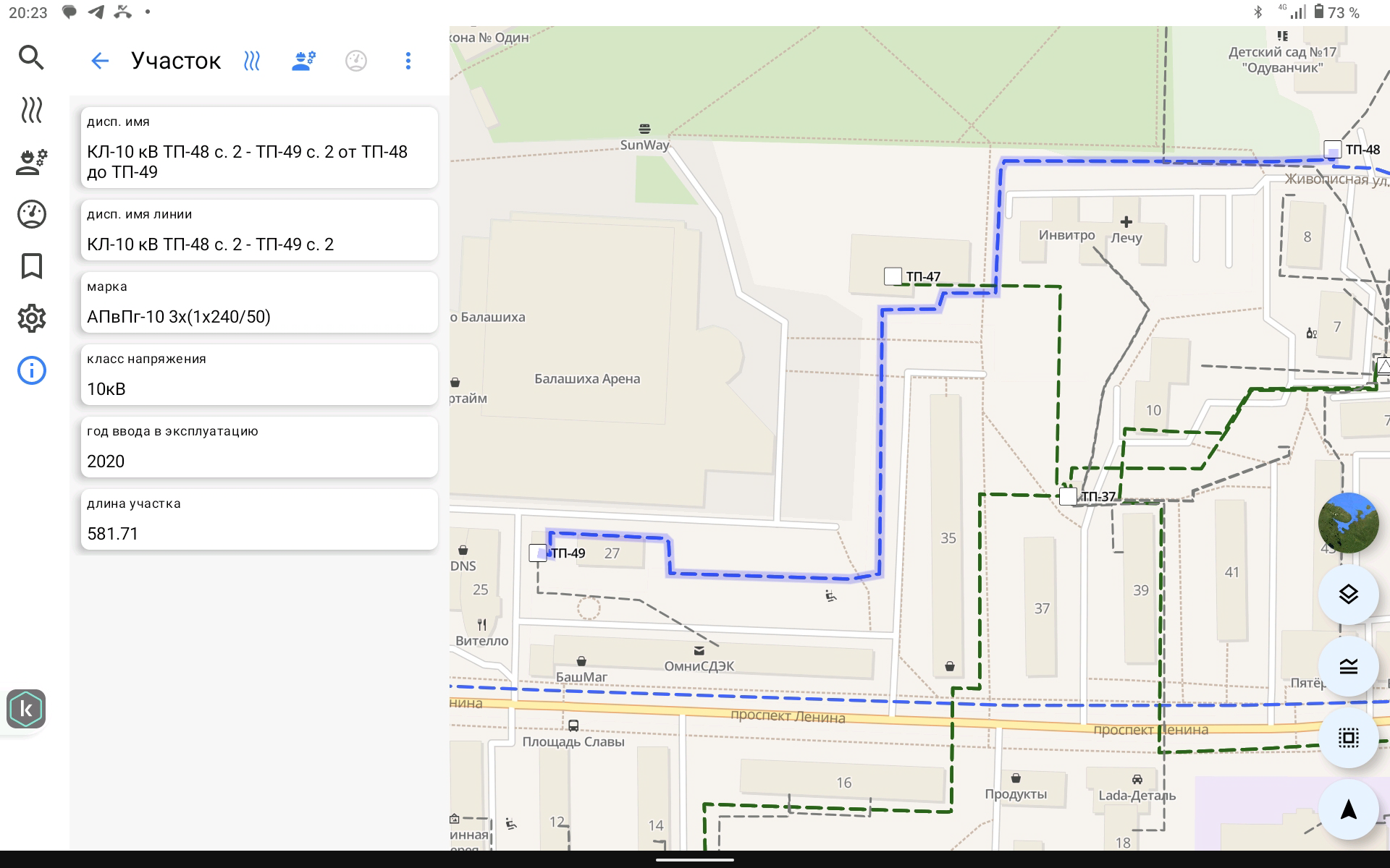 • трассу линий (например, фидеров 0,4кВ и 6-10кВ);