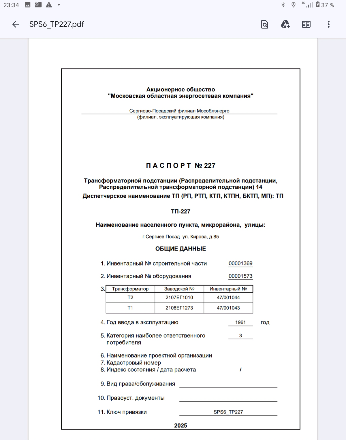 Паспорт ТП