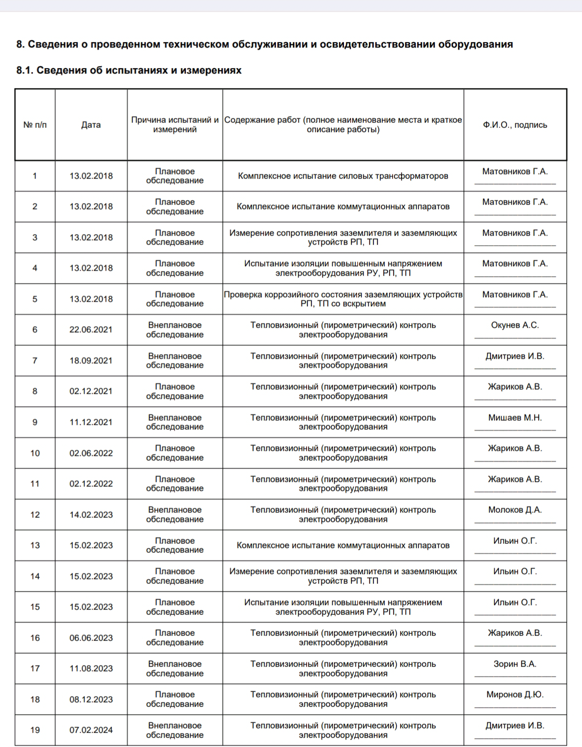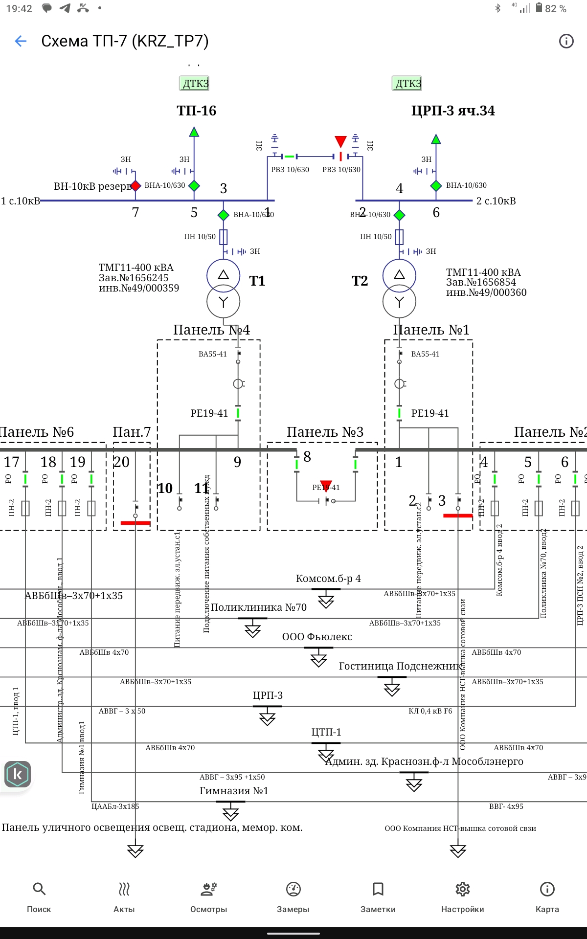 • листов осмотра электросетевого оборудования ПС, РП, ТП, ВЛ, КЛ и КВЛ;