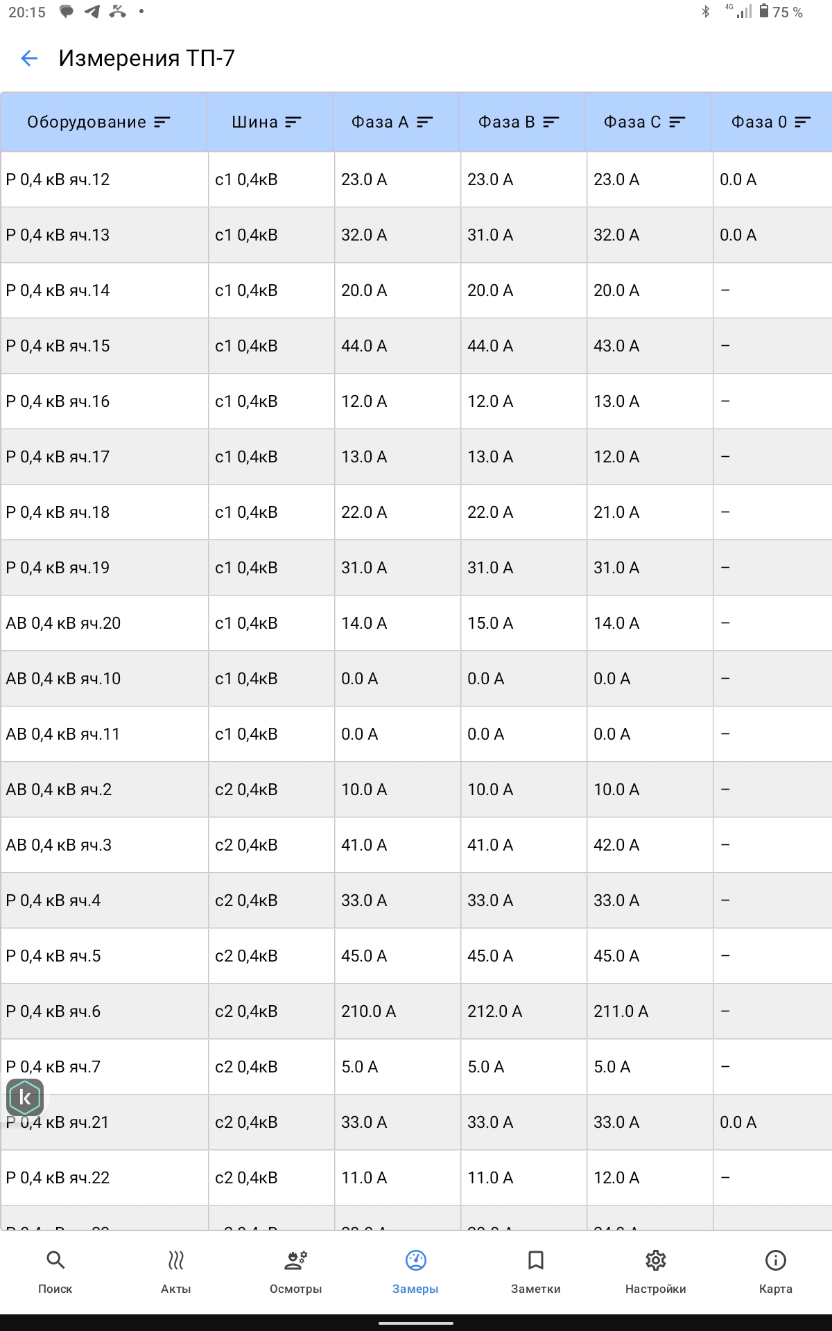• Выбирает с подробной схемы подстанции оборудование, где производится замер;