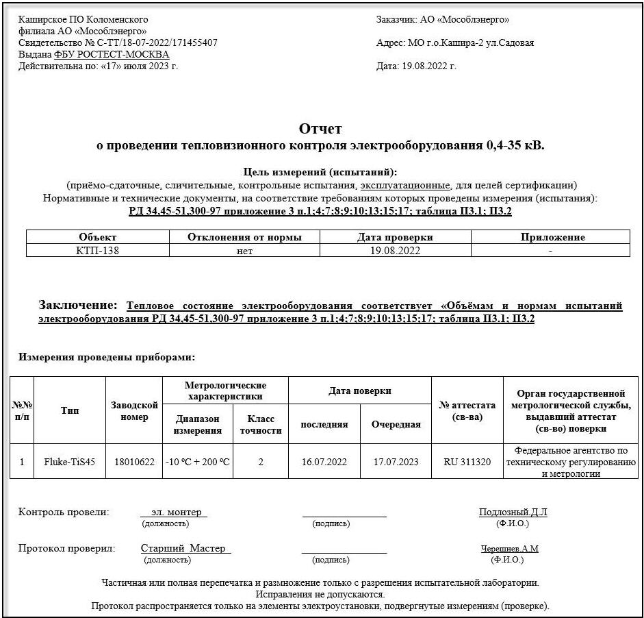 Акт тепловизионного контроля